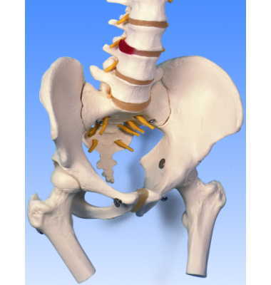 ■男性骨盤と後頭骨、ヘルニア病部、脊髄神経根、椎骨動脈、大腿骨上部付き。